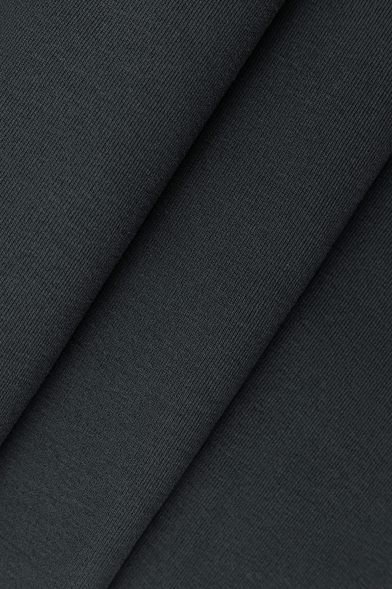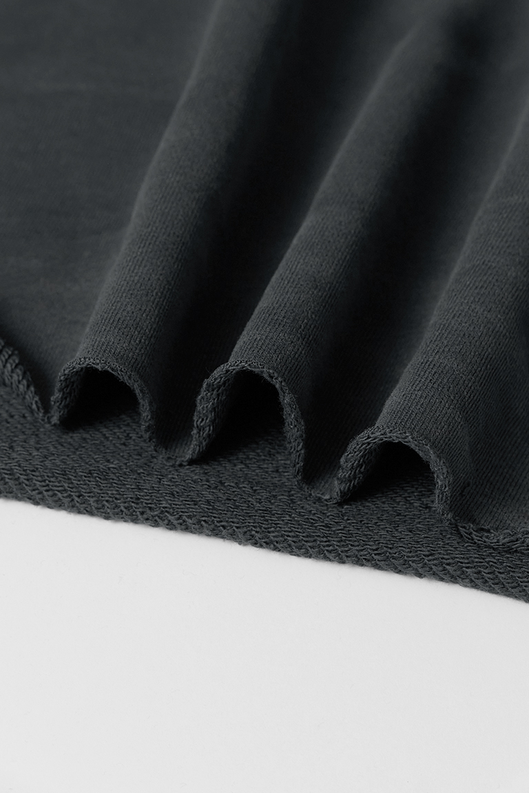Хлопковый футер 3х-нитка премиального качества компакт-пенье с комфортной плотностью полотна. Лицевая сторона гладкая, матовая, с ровными рядами аккуратных «футерных» столбиков. Изнанка – классическая объемная петля. Драпируется мягкими крупными складками. Не имеет выраженной формоустойчивости. Тянется только за счет трикотажной структуры полотна. Предназначен для пошива свитшотов, худи, брюк и других трикотажных изделий плоского кроя.
