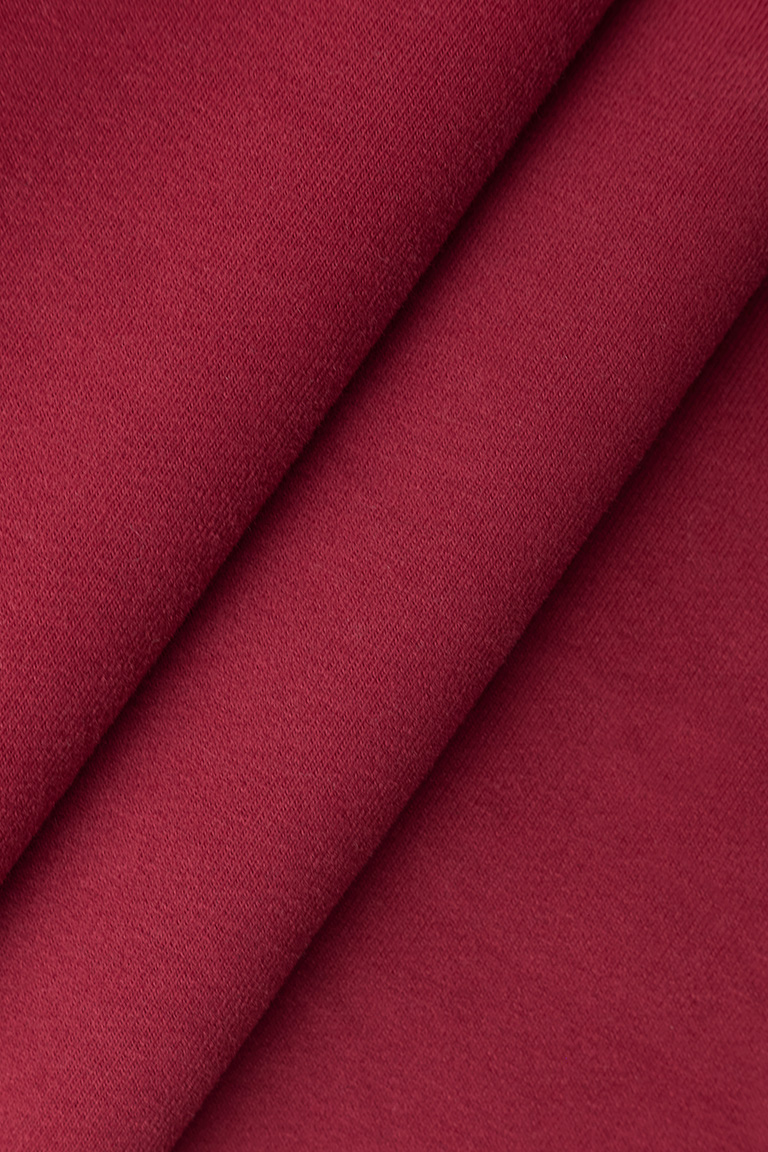 Хлопковый футер премиального качества «компакт-пенье» с велюровым эффектом на лицевой стороне полотна. Изнанка — стриженый начёс: плотный, однородный, меньше пилингуется и почти не пылит в процессе кроя (в сравнении с классикой). Не драпируется, обладает выраженной формоустойчивостью. Предназначен для пошива худи, джоггеров, тёплых платьев, свитшотов и других изделий плоского кроя.
