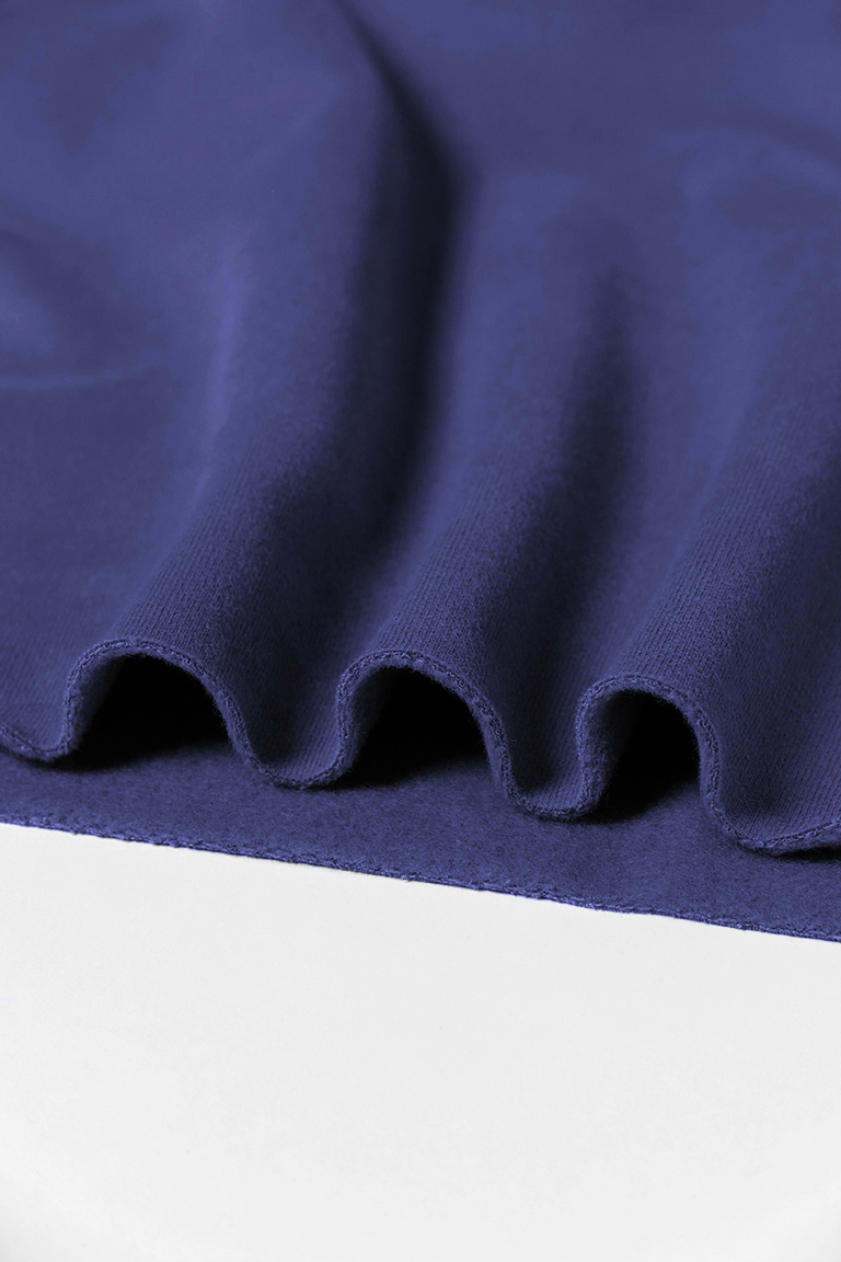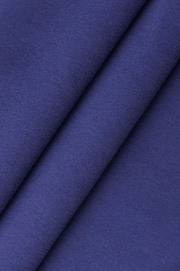 Хлопковый футер премиального качества «компакт-пенье» с велюровым эффектом на лицевой стороне полотна. Изнанка — стриженый начёс: плотный, однородный, меньше пилингуется и почти не пылит в процессе кроя (в сравнении с классикой). Не драпируется, обладает выраженной формоустойчивостью. Предназначен для пошива худи, джоггеров, тёплых платьев, свитшотов и других изделий плоского кроя.