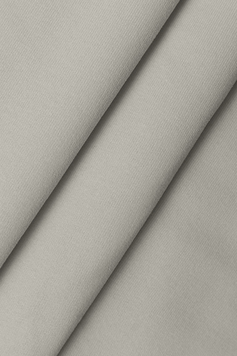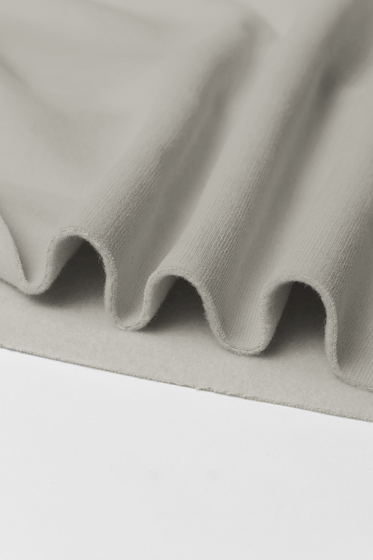 Хлопковый футер премиального качества «компакт-пенье» с велюровым эффектом на лицевой стороне полотна. Изнанка — стриженый начёс: плотный, однородный, меньше пилингуется и почти не пылит в процессе кроя (в сравнении с классикой). Не драпируется, обладает выраженной формоустойчивостью. Предназначен для пошива худи, джоггеров, тёплых платьев, свитшотов и других изделий плоского кроя.
