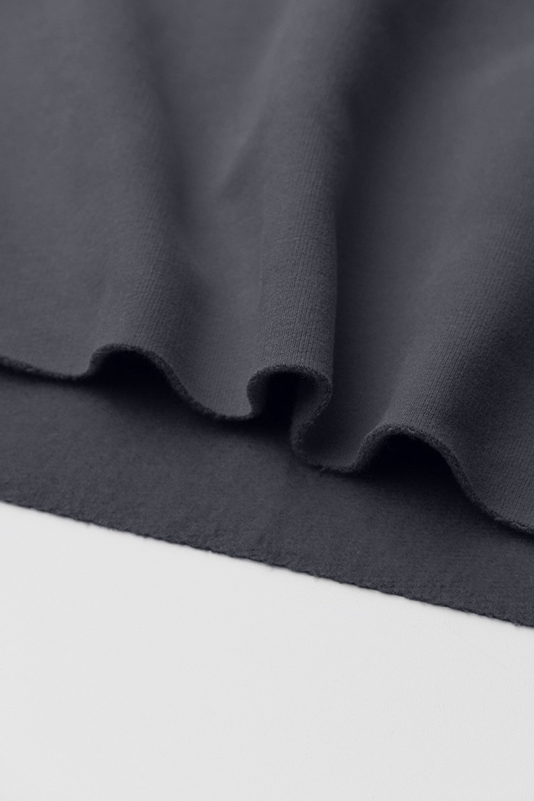 Хлопковый футер премиального качества «компакт-пенье» с велюровым эффектом на лицевой стороне полотна. Изнанка — стриженый начёс: плотный, однородный, меньше пилингуется и почти не пылит в процессе кроя (в сравнении с классикой). Не драпируется, обладает выраженной формоустойчивостью. Предназначен для пошива худи, джоггеров, тёплых платьев, свитшотов и других изделий плоского кроя.