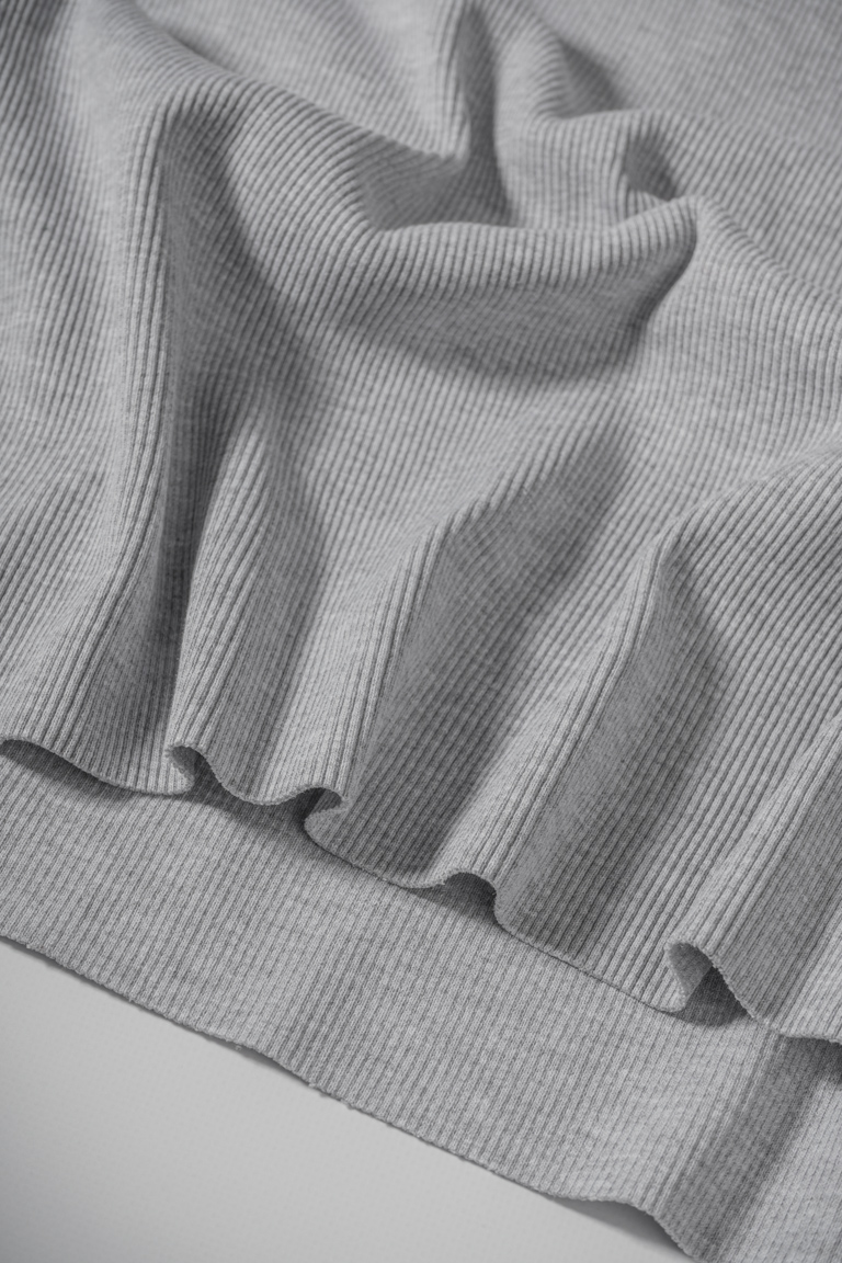 Плотный хлопковый кашкорсе премиального качества компакт-пенье. Хорошо тянется в поперечном направлении, держит форму, почти не драпируется. Лицевая и изнаночная стороны полотна имеют характерный «рубчик». Используется для оформления горловин, манжет и поясов в вещах из футера 3-х нитки и для пошива самостоятельных изделий с плотной посадкой по фигуре – топов, водолазок, легинсов, велосипедок и т.д.