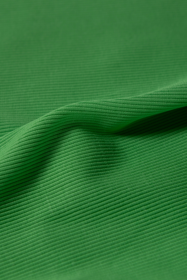 Плотный хлопковый кашкорсе премиального качества компакт-пенье. Хорошо тянется в поперечном направлении, держит форму, почти не драпируется. Лицевая и изнаночная стороны полотна имеют характерный «рубчик». Используется для оформления горловин, манжет и поясов в вещах из футера 3-х нитки и для пошива самостоятельных изделий с плотной посадкой по фигуре – топов, водолазок, легинсов, велосипедок и т.д.
