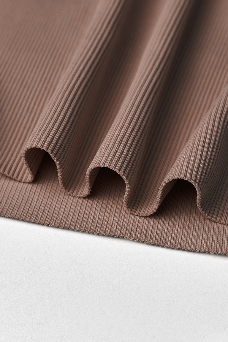 Плотный хлопковый кашкорсе премиального качества компакт-пенье. Хорошо тянется в поперечном направлении, держит форму, почти не драпируется. Лицевая и изнаночная стороны полотна имеют характерный «рубчик». Используется для оформления горловин, манжет и поясов в вещах из футера 3-х нитки и для пошива самостоятельных изделий с плотной посадкой по фигуре – топов, водолазок, легинсов, велосипедок и т.д.