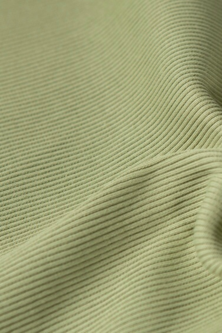 Плотный хлопковый кашкорсе премиального качества компакт-пенье. Хорошо тянется в поперечном направлении, держит форму, почти не драпируется. Лицевая и изнаночная стороны полотна имеют характерный «рубчик». Используется для оформления горловин, манжет и поясов в вещах из футера 3-х нитки и для пошива самостоятельных изделий с плотной посадкой по фигуре – топов, водолазок, легинсов, велосипедок и т.д.