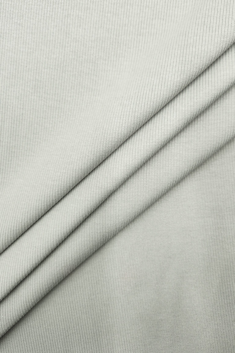 Плотный хлопковый кашкорсе премиального качества компакт-пенье. Хорошо тянется в поперечном направлении, держит форму, почти не драпируется. Лицевая и изнаночная стороны полотна имеют характерный «рубчик». Используется для оформления горловин, манжет и поясов в вещах из футера 3-х нитки и для пошива самостоятельных изделий с плотной посадкой по фигуре – топов, водолазок, легинсов, велосипедок и т.д.
