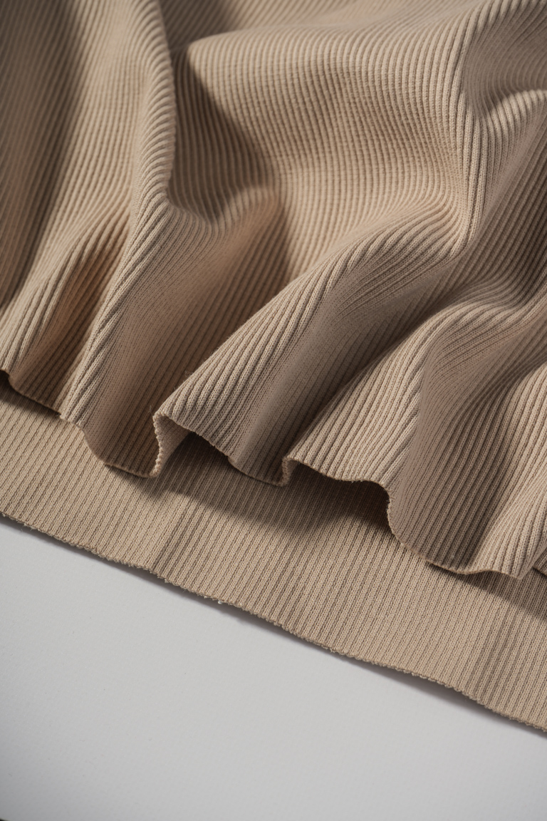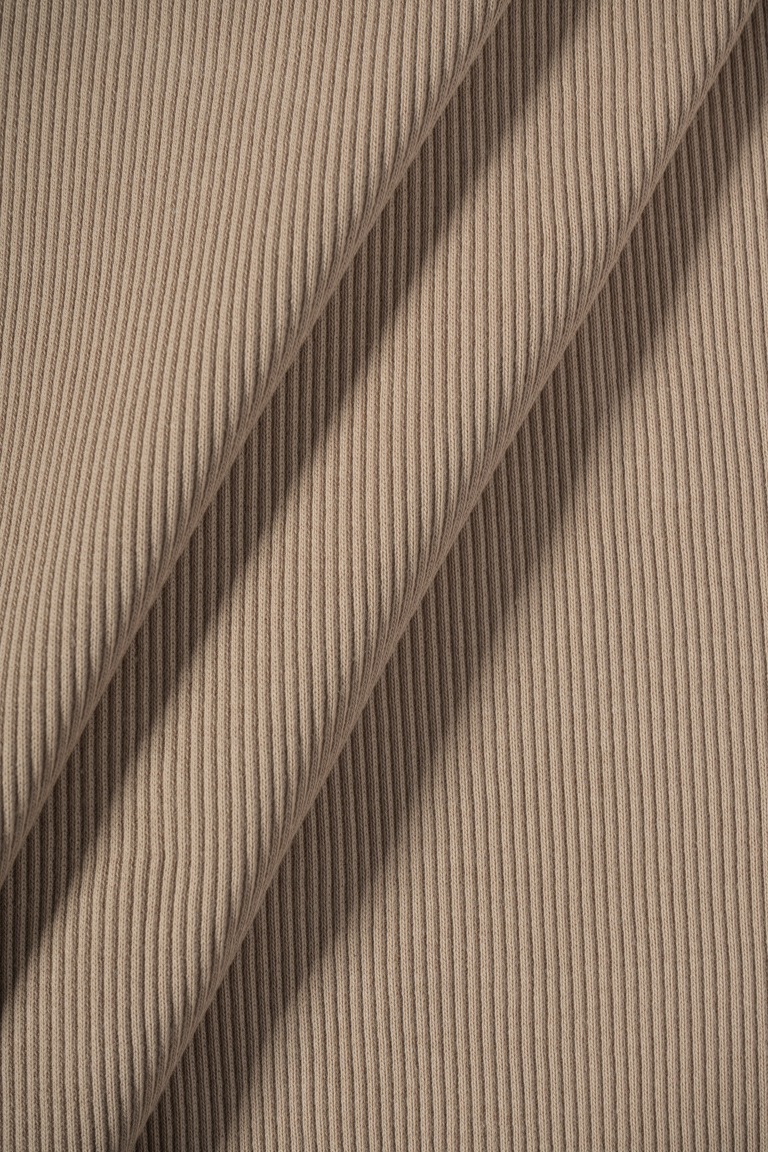 Плотный хлопковый кашкорсе премиального качества компакт-пенье. Хорошо тянется в поперечном направлении, держит форму, почти не драпируется. Лицевая и изнаночная стороны полотна имеют характерный «рубчик». Используется для оформления горловин, манжет и поясов в вещах из футера 3-х нитки и для пошива самостоятельных изделий с плотной посадкой по фигуре – топов, водолазок, легинсов, велосипедок и т.д.