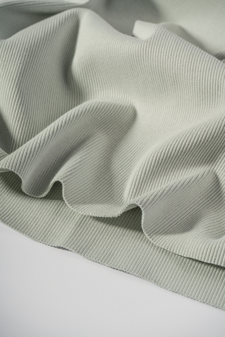 Плотный хлопковый кашкорсе премиального качества компакт-пенье. Хорошо тянется в поперечном направлении, держит форму, почти не драпируется. Лицевая и изнаночная стороны полотна имеют характерный «рубчик». Используется для оформления горловин, манжет и поясов в вещах из футера 3-х нитки и для пошива самостоятельных изделий с плотной посадкой по фигуре – топов, водолазок, легинсов, велосипедок и т.д.