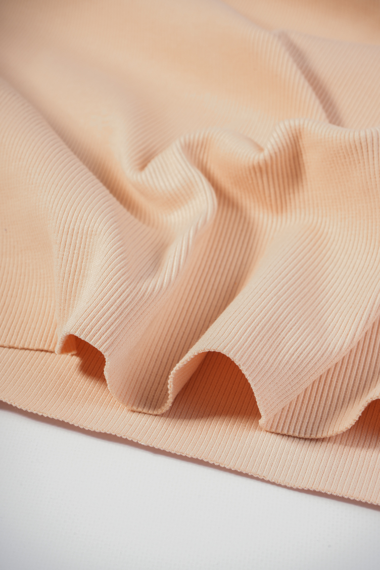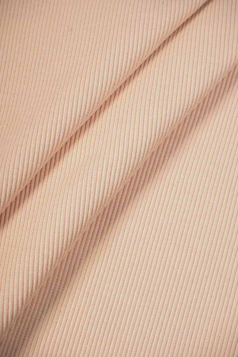 Плотный хлопковый кашкорсе премиального качества компакт-пенье. Хорошо тянется в поперечном направлении, держит форму, почти не драпируется. Лицевая и изнаночная стороны полотна имеют характерный «рубчик». Используется для оформления горловин, манжет и поясов в вещах из футера 3-х нитки и для пошива самостоятельных изделий с плотной посадкой по фигуре – топов, водолазок, легинсов, велосипедок и т.д.