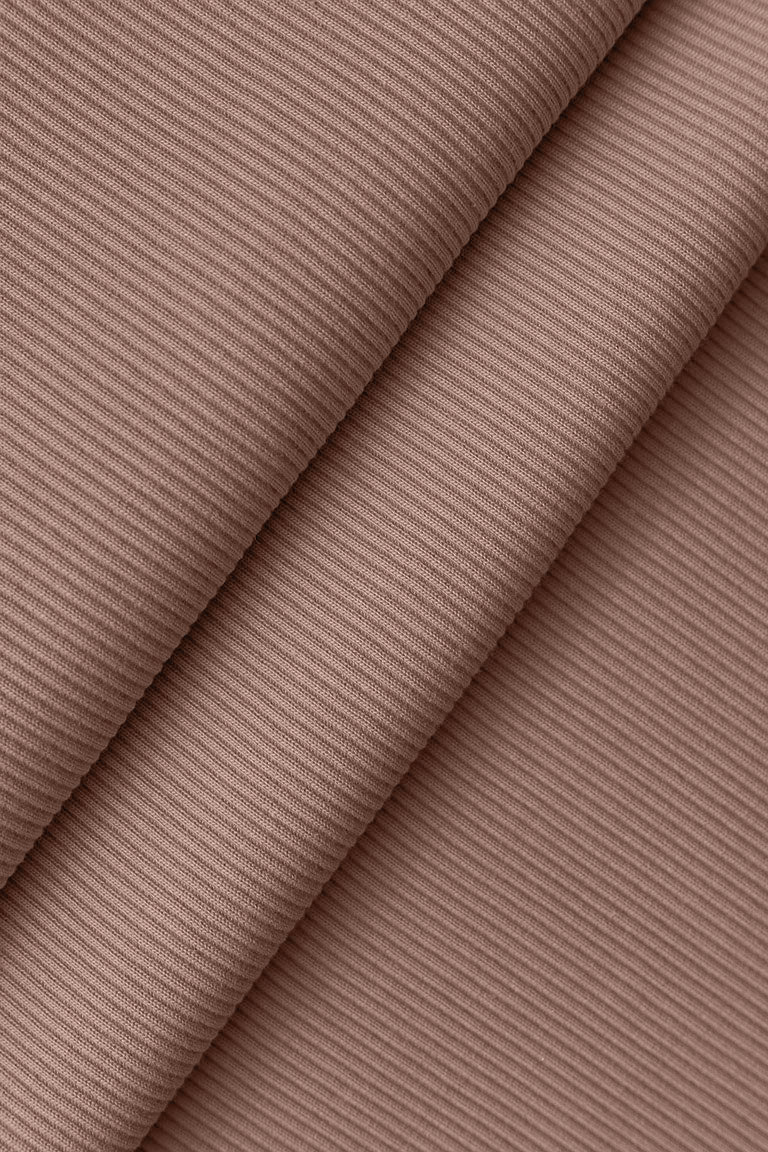 Плотный хлопковый кашкорсе премиального качества компакт-пенье. Хорошо тянется в поперечном направлении, держит форму, почти не драпируется. Лицевая и изнаночная стороны полотна имеют характерный «рубчик». Используется для оформления горловин, манжет и поясов в вещах из футера 3-х нитки и для пошива самостоятельных изделий с плотной посадкой по фигуре – топов, водолазок, легинсов, велосипедок и т.д.