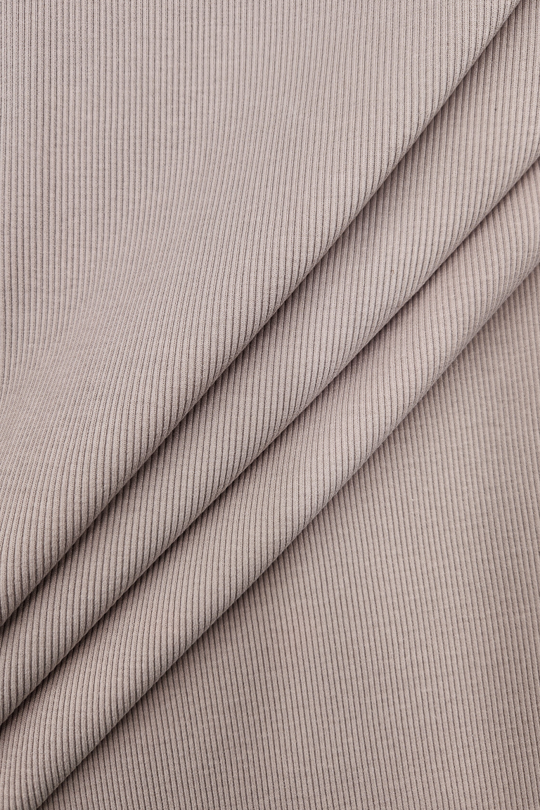 Плотный хлопковый кашкорсе премиального качества компакт-пенье. Хорошо тянется в поперечном направлении, держит форму, почти не драпируется. Лицевая и изнаночная стороны полотна имеют характерный «рубчик». Используется для оформления горловин, манжет и поясов в вещах из футера 3-х нитки и для пошива самостоятельных изделий с плотной посадкой по фигуре – топов, водолазок, легинсов, велосипедок и т.д.