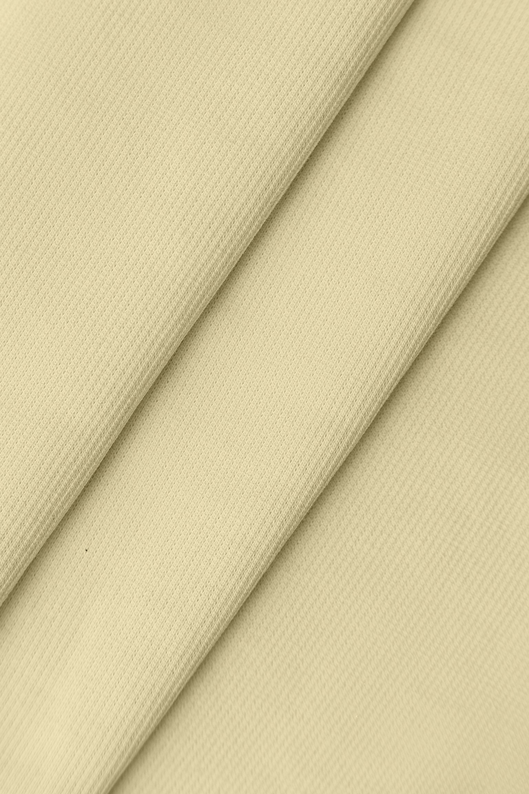 Плотный хлопковый кашкорсе премиального качества компакт-пенье. Хорошо тянется в поперечном направлении, держит форму, почти не драпируется. Лицевая и изнаночная стороны полотна имеют характерный «рубчик». Используется для оформления горловин, манжет и поясов в вещах из футера 3-х нитки и для пошива самостоятельных изделий с плотной посадкой по фигуре – топов, водолазок, легинсов, велосипедок и т.д.