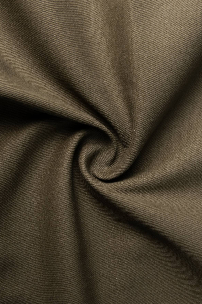 Плотный хлопок-коттон. Лицевая сторона гладкая, матовая, с едва заметным диагональным переплетением нитей. Изнанка мягкая, тактильно приятная к телу. Материал не тянется, демонстрирует выраженную формоустойчивость. Обладает легкой сминаемостью, характерной для всех натуральных полотен. Может использоваться для пошива вещей полуприлегающего или свободного силуэта – брюк и рубашек в стиле «карго», облегченных курток, жакетов, жилетов, платьев, юбок и т.д.