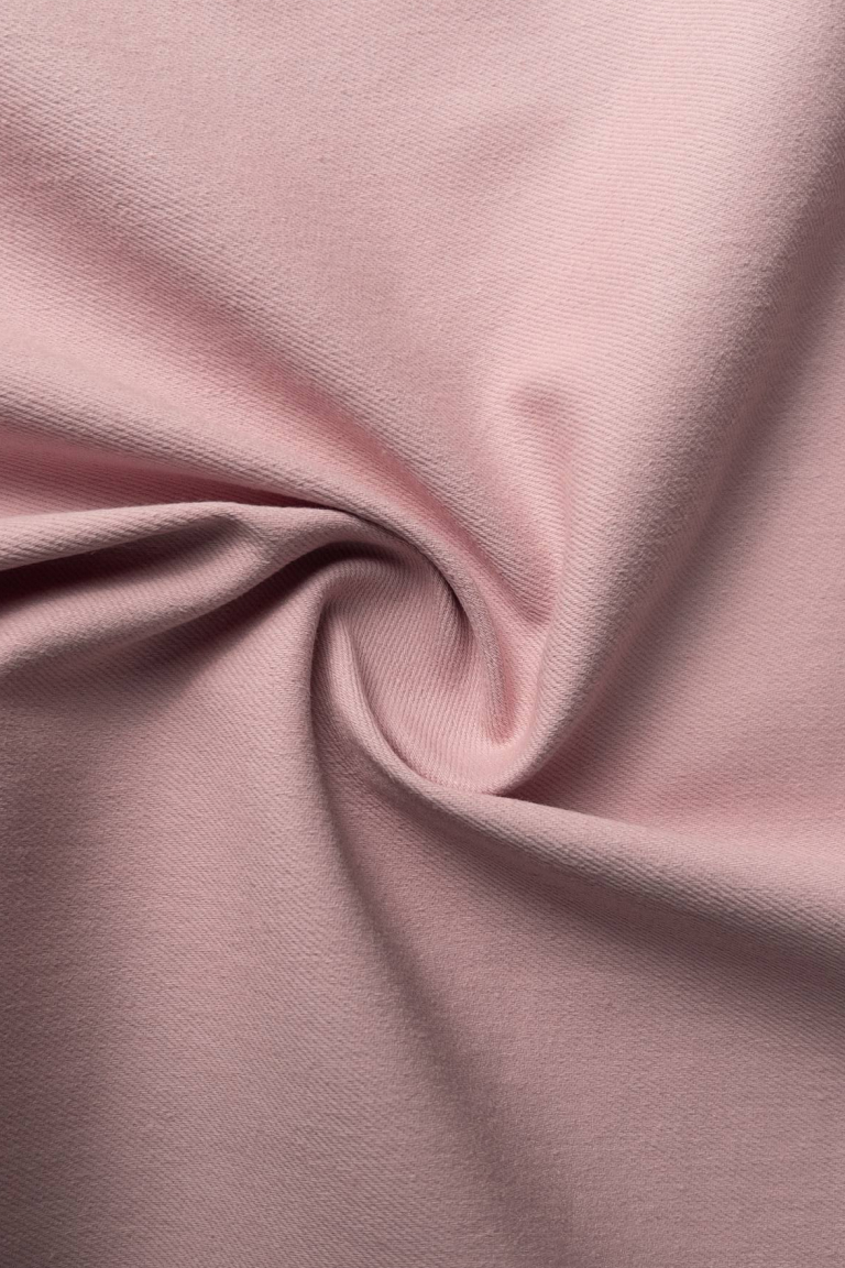 Плотный хлопок-коттон. Лицевая сторона гладкая, матовая, с едва заметным диагональным переплетением нитей. Изнанка мягкая, тактильно приятная к телу. Материал не тянется, демонстрирует выраженную формоустойчивость. Обладает легкой сминаемостью, характерной для всех натуральных полотен. Может использоваться для пошива вещей полуприлегающего или свободного силуэта – брюк и рубашек в стиле «карго», облегченных курток, жакетов, жилетов, платьев, юбок и т.д.