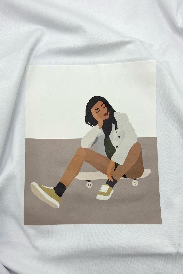 КУПОН ДЛЯ ФУТБОЛКИ 0,8 м (180 см) БЕЛЫЙ(240 ГР) ДЕВУШКА НА СКЕЙТЕ