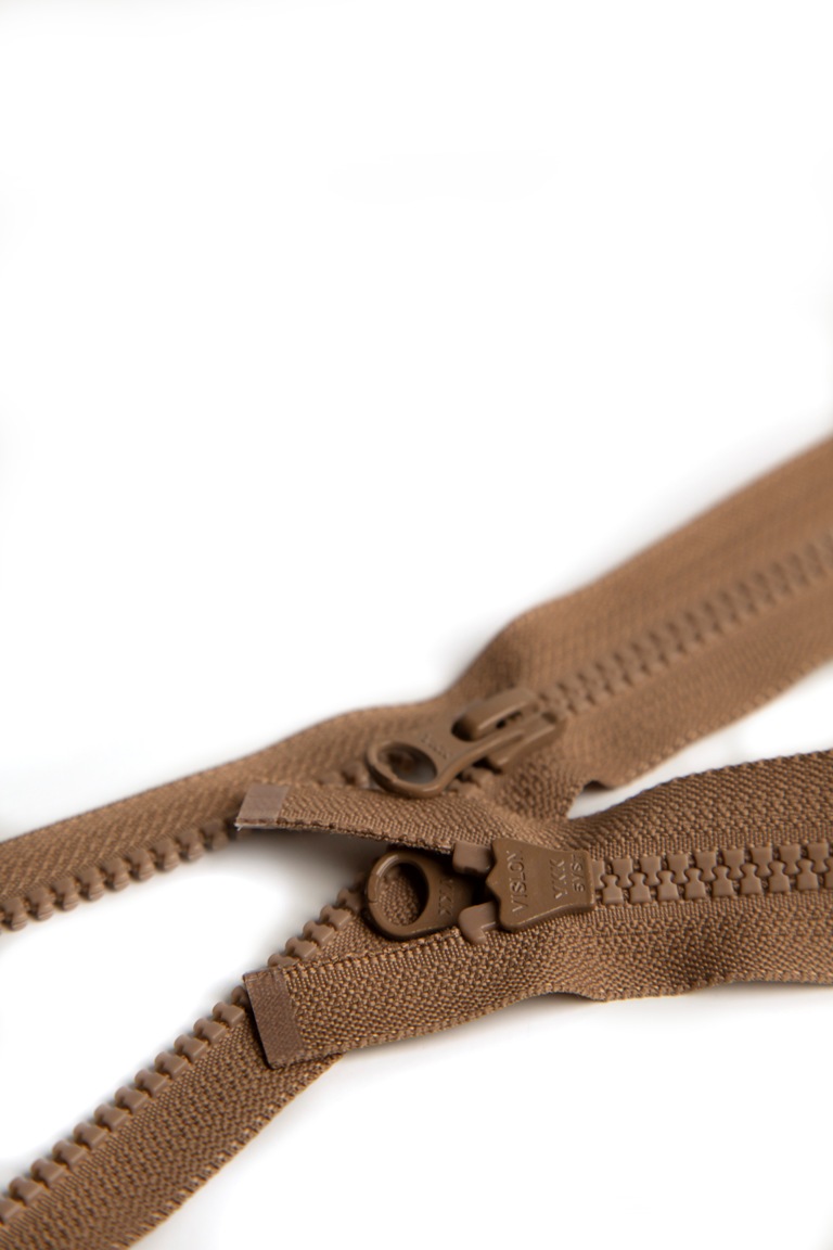 Тракторная молния YKK с двумя слайдерами в оттенке "Древесный дым/Коричневый/Молочный шоколад". Длина молнии - 55 см.