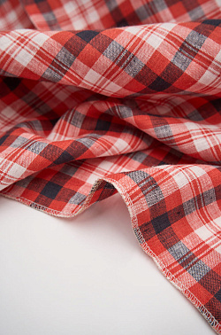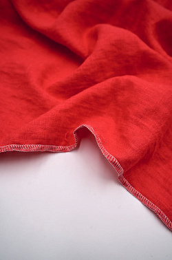 ОТРЕЗ 1м (ЛЁН 100% костюмный с эффектом мятости КРАСНЫЙ 185гр, 150см)