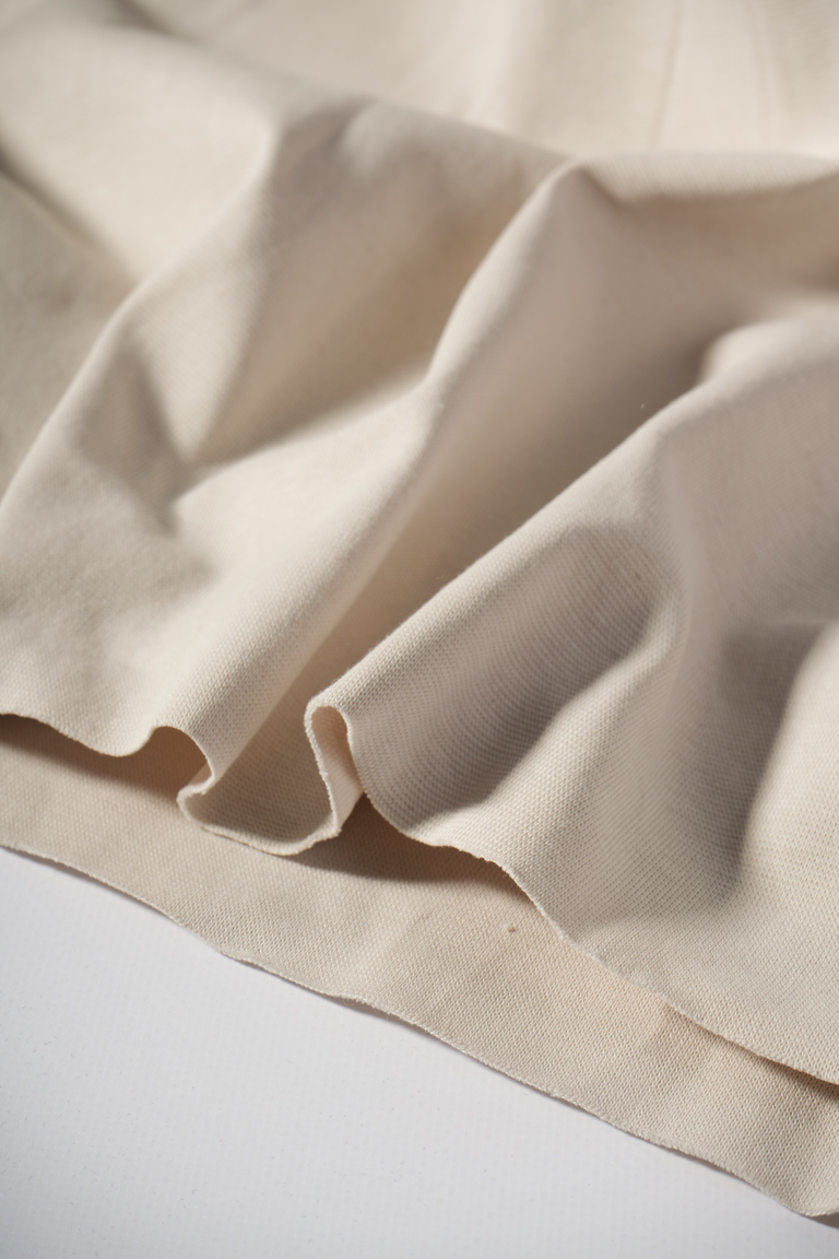 Мягкий хлопковый трикотаж премиального качества компакт-пенье. Хорошо тянется в поперечном направлении, держит форму, обладает средней драпируемостью. Лицевая и изнаночная стороны полотна гладкие, тактильно приятные к телу. Предназначен для оформления горловин, манжет и поясов в вещах из кулирной глади и футера-двунитки. Может использоваться для пошива вещей первого слоя с плотной посадкой по фигуре – топов, боди, маек и белья.