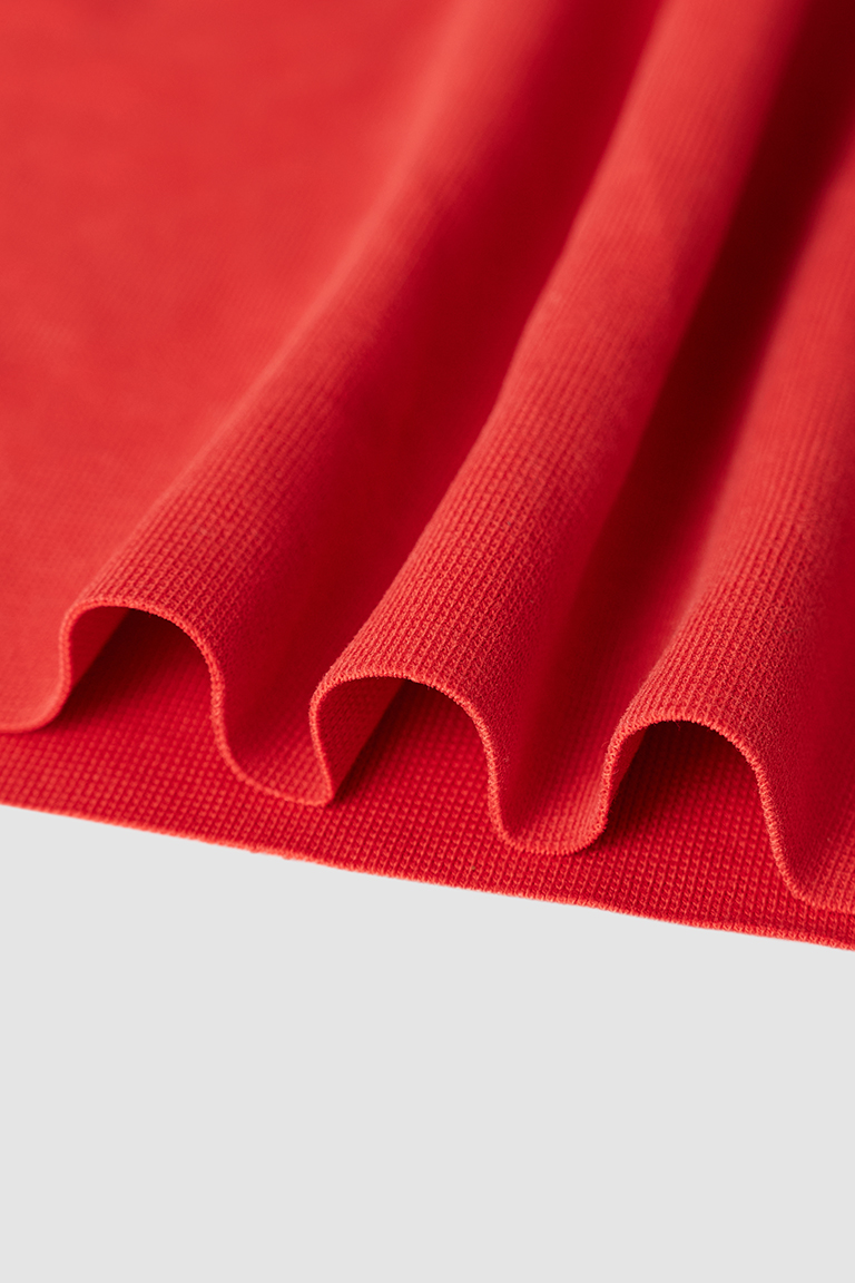 Мягкий хлопковый трикотаж премиального качества компакт-пенье. Хорошо тянется в поперечном направлении, держит форму, почти не драпируется. Лицевая и изнаночная стороны полотна гладкие, тактильно приятные к телу. Предназначен для оформления горловин, манжет и поясов в вещах из плотной кулирной глади и всех видов футера. Может использоваться для пошива вещей первого слоя с плотной посадкой по фигуре – топов, боди, лонгсливов, водолазок, легинсов, велосипедок и т.д.