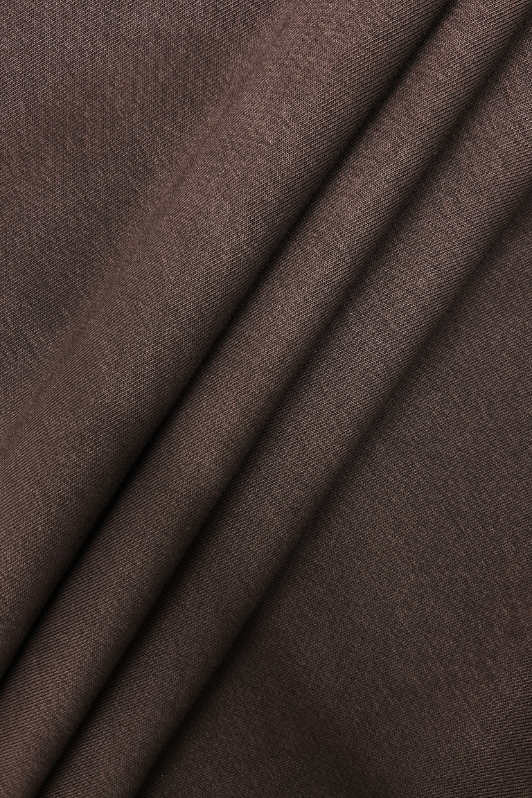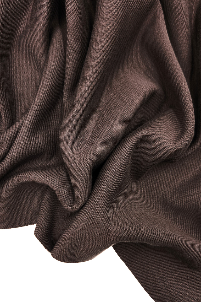 Хлопковый футер трёхнитка премиального качества компакт-пенье с комфортной плотностью полотна. Лицевая сторона — гладкая, матовая, с ровными рядами аккуратных «футерных» столбиков. Изнанка — классическая объёмная петля. Драпируется мягкими крупными складками. Не имеет выраженной формоустойчивости. Тянется только за счёт трикотажной структуры полотна. Предназначен для пошива свитшотов, худи, брюк и других трикотажных изделий плоского кроя.