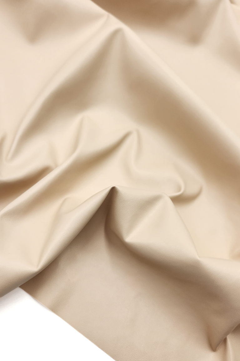 Экокожа в нежном оттенке ЭКРЮ – современный экологичный материал, значительно отличающийся от своего менее качественного аналога – искусственной кожи. Она обладает хорошей эластичностью, легко гнется, не скрипит при любом движении, не деформируется, не заламывается в местах складок и не протирается после нескольких ношений. Благодаря ее легкому блеску, экокожу можно использовать в качестве альтернативы модным, но не всегда удачно вписывающимся в гардероб металлизированным тканям.