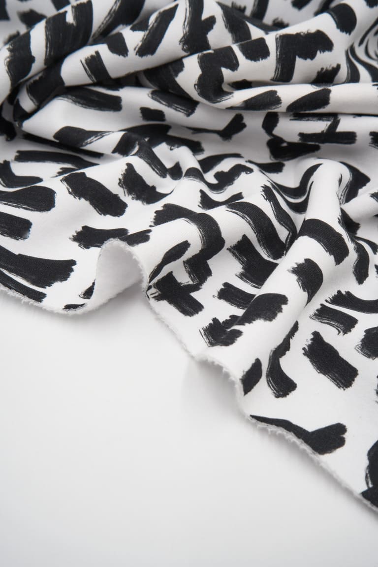 Тёплый хлопковый футер премиального качества компакт-пенье. Лицевая сторона гладкая, матовая, с мелким повторяющимся принтом. Изнанка – стриженый начёс: плотный, однородный, меньше пилингуется и почти не пылит в процессе кроя (в сравнении с классикой). Не драпируется, обладает выраженной формоустойчивостью. Может использоваться для пошива худи, джоггеров, тёплых платьев, свитшотов и других изделий плоского кроя.