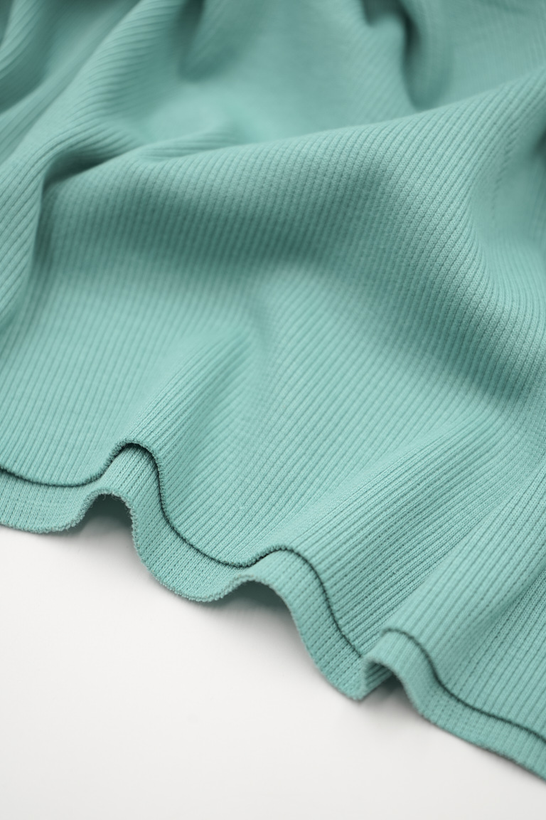 Мягкий хлопковый кашкорсе премиального качества компакт-пенье. Хорошо тянется в поперечном направлении, держит форму, почти не драпируется. Лицевая и изнаночная стороны полотна имеют характерный «рубчик». Используется для оформления горловин, манжет и поясов в вещах из футера 2-х и 3-х нитки, а также для пошива самостоятельных изделий с плотной посадкой по фигуре – топов, водолазок, легинсов, велосипедок и т.д.
