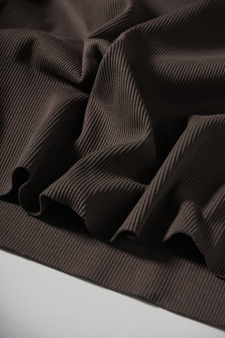 Мягкий хлопковый кашкорсе премиального качества компакт-пенье. Хорошо тянется в поперечном направлении, держит форму, почти не драпируется. Лицевая и изнаночная стороны полотна имеют характерный «рубчик». Используется для оформления горловин, манжет и поясов в вещах из футера 2-х и 3-х нитки, а также для пошива самостоятельных изделий с плотной посадкой по фигуре – топов, водолазок, легинсов, велосипедок и т.д.