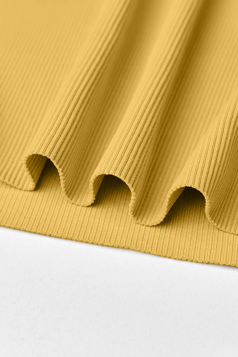 Плотный хлопковый кашкорсе премиального качества компакт-пенье. Хорошо тянется в поперечном направлении, держит форму, почти не драпируется. Лицевая и изнаночная стороны полотна имеют характерный «рубчик». Используется для оформления горловин, манжет и поясов в вещах из футера 3-х нитки и для пошива самостоятельных изделий с плотной посадкой по фигуре – топов, водолазок, легинсов, велосипедок и т.д.