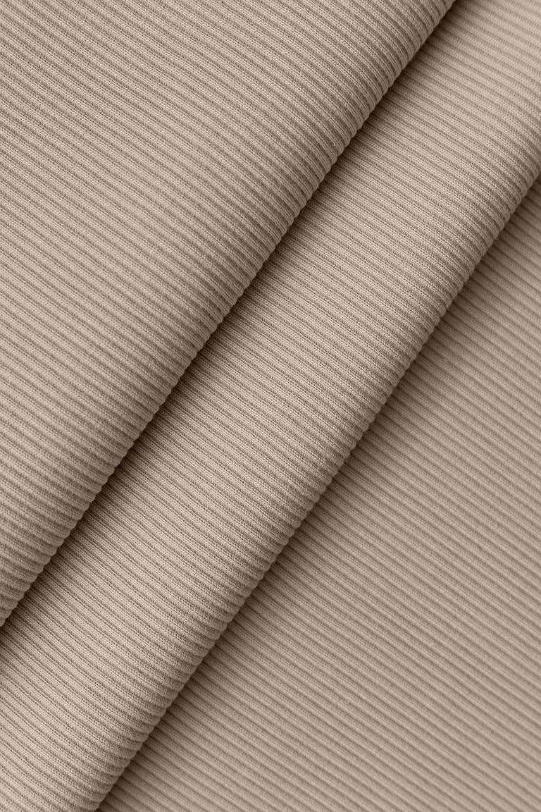 Плотный хлопковый кашкорсе премиального качества компакт-пенье. Хорошо тянется в поперечном направлении, держит форму, почти не драпируется. Лицевая и изнаночная стороны полотна имеют характерный «рубчик». Используется для оформления горловин, манжет и поясов в вещах из футера 3-х нитки и для пошива самостоятельных изделий с плотной посадкой по фигуре – топов, водолазок, легинсов, велосипедок и т.д.