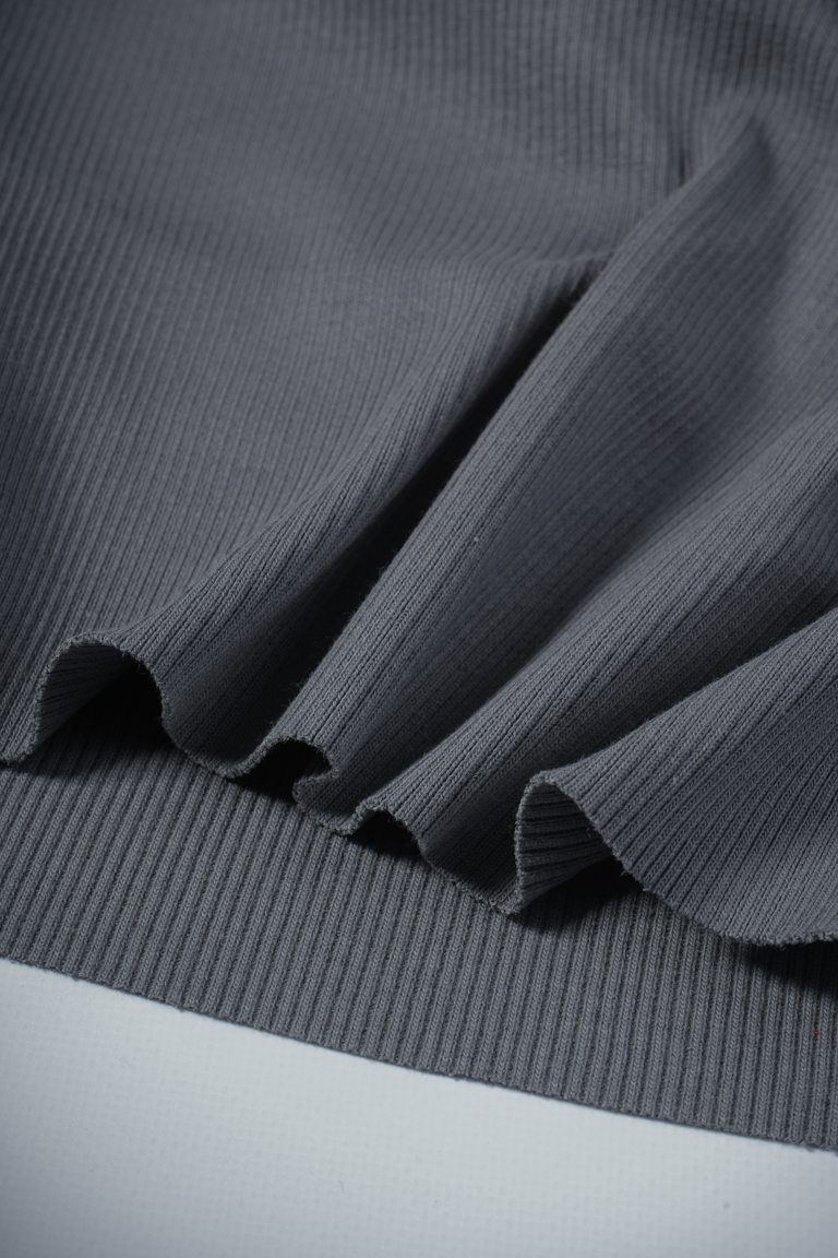 Плотный хлопковый кашкорсе премиального качества компакт-пенье. Хорошо тянется в поперечном направлении, держит форму, почти не драпируется. Лицевая и изнаночная стороны полотна имеют характерный «рубчик». Используется для оформления горловин, манжет и поясов в вещах из футера 3-х нитки и для пошива самостоятельных изделий с плотной посадкой по фигуре – топов, водолазок, легинсов, велосипедок и т.д.