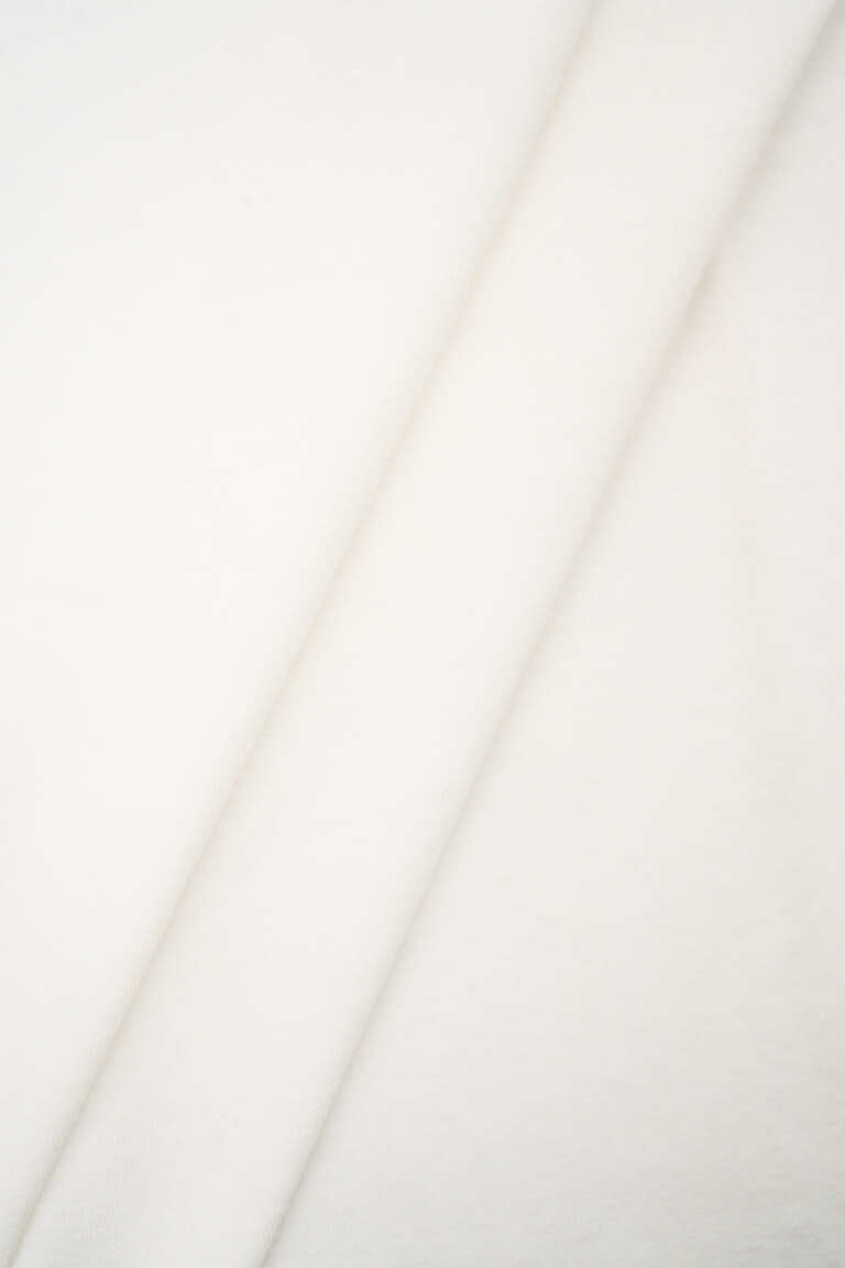 Классическая кулирная гладь средней плотности (200 гр/м2) в оттенке "Кокосовое молоко" с велюровым эффектом на лицевой стороне материала.