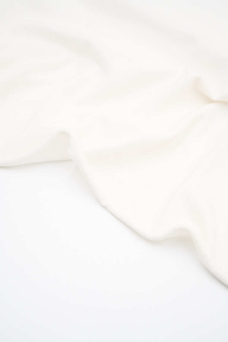 Велюровая кулирная гладь премиального качества компакт-пенье. Лицевая сторона — гладкая, матовая, с едва заметным пушком, напоминающим фактуру персика. Изнанка — мягкая, тактильно приятная к коже. Хорошо тянется, драпируется мелкими складками. Обладает лёгкой сминаемостью, характерной для всех натуральных полотен. Имеет комфортную плотность, подходит для пошива топов, футболок, платьев, лонгсливов, комфортной домашней одежды и пижам.
