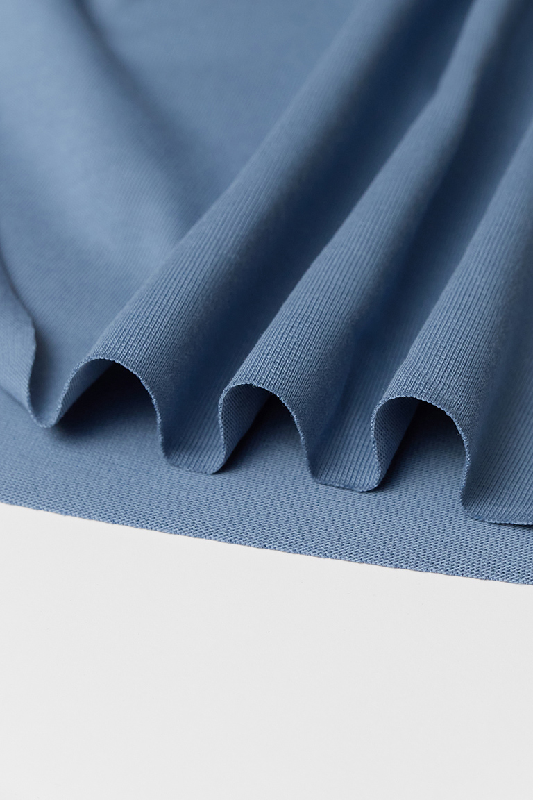 Хлопковая кулирная гладь повышенной плотности. Качество — компакт-пенье. Лицевая сторона — гладкая, матовая. Изнанка — мягкая, приятная к телу. Драпируется мелкими складками. Обладает лёгкой сминаемостью, характерной для всех натуральных полотен. Предназначена для пошива футболок, платьев, лонгсливов, комфортной домашней одежды.
