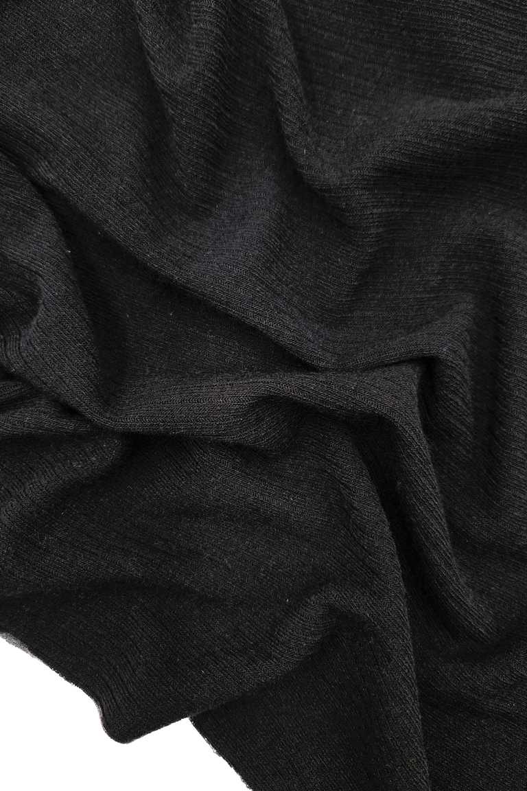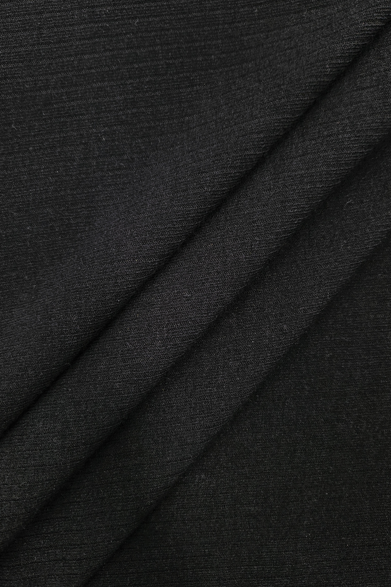 Тонкий эластичный материал с рельефными полосами, расположенными вдоль кромки полотна. По структуре переплетения нитей похож на «английскую резинку» – схему чередования петель, которую используют в классическом вязании спицами. Хорошо тянется, не просвечивает. Предназначен для пошива одежды по фигуре – водолазок, лонгсливов, боди, платьев и брюк. Из-за вискозы в составе подвержен незначительной усадке. Перед раскроем необходима декатировка полотна.