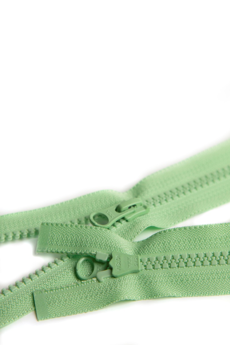 Тракторная молния YKK с двумя слайдерами в оттенке "Мятная тыква/Зеленое яблоко". Длина молнии - 55 см.