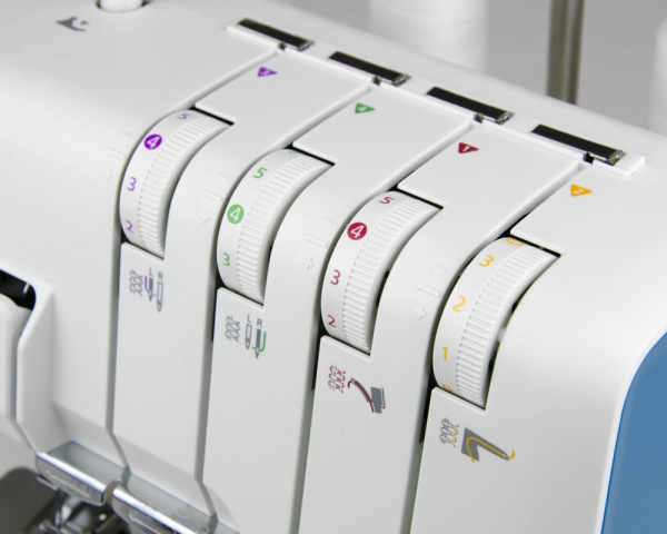Функциональные особенности швейного оборудования: Дифференциальная подача материала, Отключаемый нож, Регулировка скорости шитья, Регулятор давления лапки на ткань, Регулятор длины стежка, Подсветка рабочей зоны
