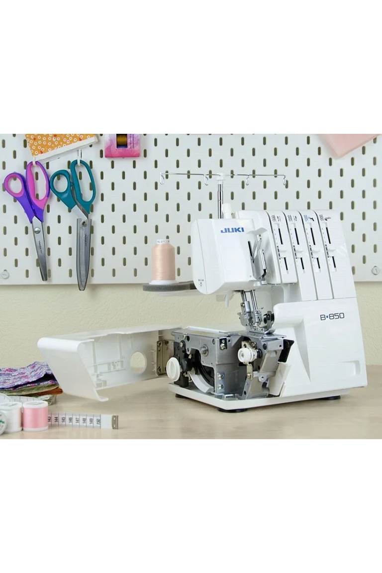 Juki B 850 - это превосходный 3-4x ниточный оверлок с необходимым набором функций для работы с различными видами тканей. Дифференциальный транспортер обеспечивает идеальное выполнение швов на тянущихся материалах. Применяя только правую или только левую иглу, вы получите еще больше возможностей использования различных видов строчек. Оверлок Juki B 850 прост в обращении и вы научитесь работать на нем за очень короткое время!