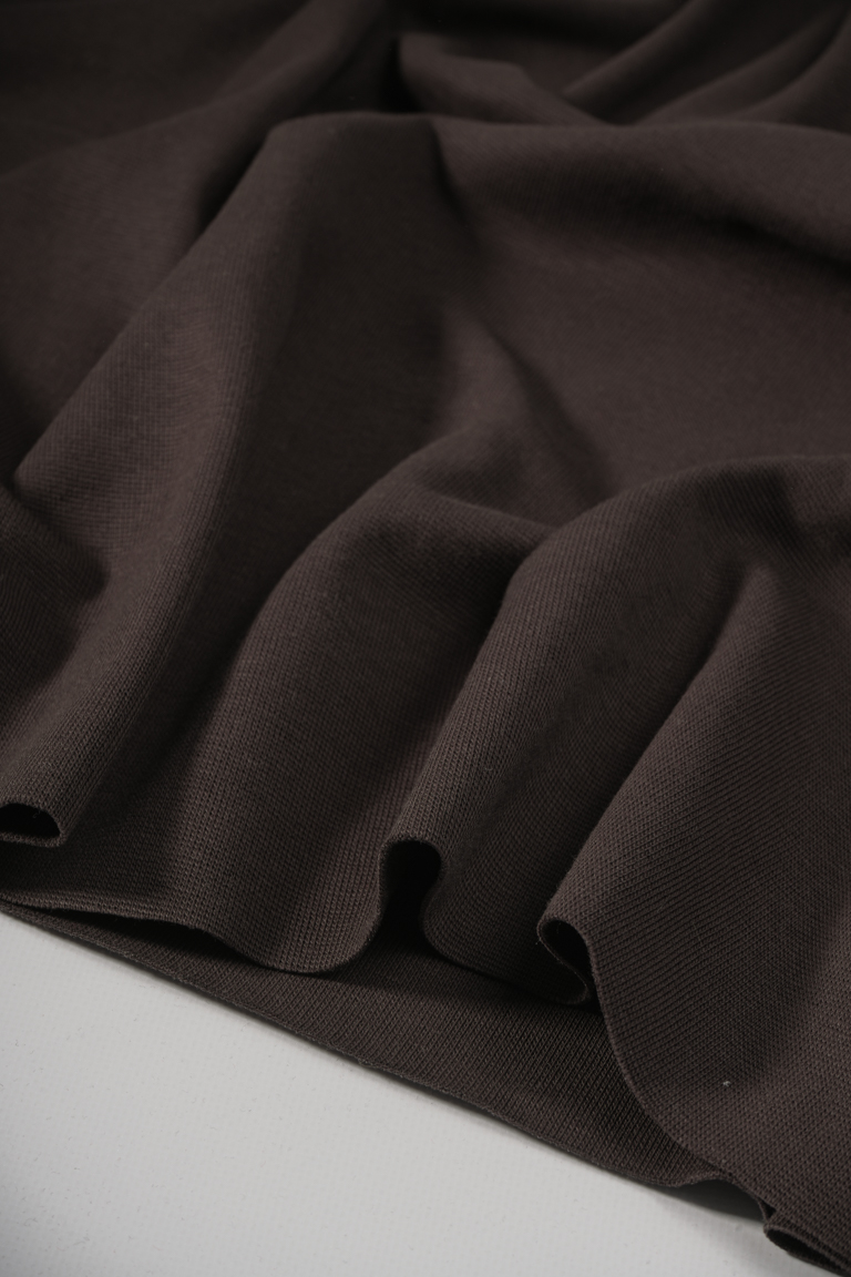 Мягкий хлопковый трикотаж премиального качества компакт-пенье. Хорошо тянется в поперечном направлении, держит форму, обладает средней драпируемостью. Лицевая и изнаночная стороны полотна гладкие, тактильно приятные к телу. Предназначен для оформления горловин, манжет и поясов в вещах из кулирной глади и футера-двунитки. Может использоваться для пошива вещей первого слоя с плотной посадкой по фигуре – топов, боди, маек и белья.