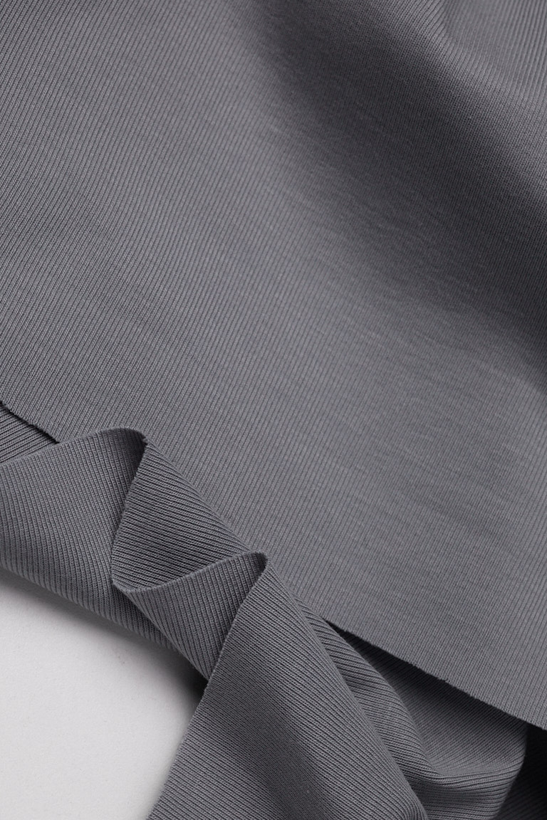 Мягкий хлопковый трикотаж премиального качества компакт-пенье. Хорошо тянется в поперечном направлении, держит форму, обладает средней драпируемостью. Лицевая и изнаночная стороны полотна гладкие, тактильно приятные к телу. Предназначен для оформления горловин, манжет и поясов в вещах из кулирной глади и футера-двунитки. Может использоваться для пошива вещей первого слоя с плотной посадкой по фигуре – топов, боди, маек и белья.