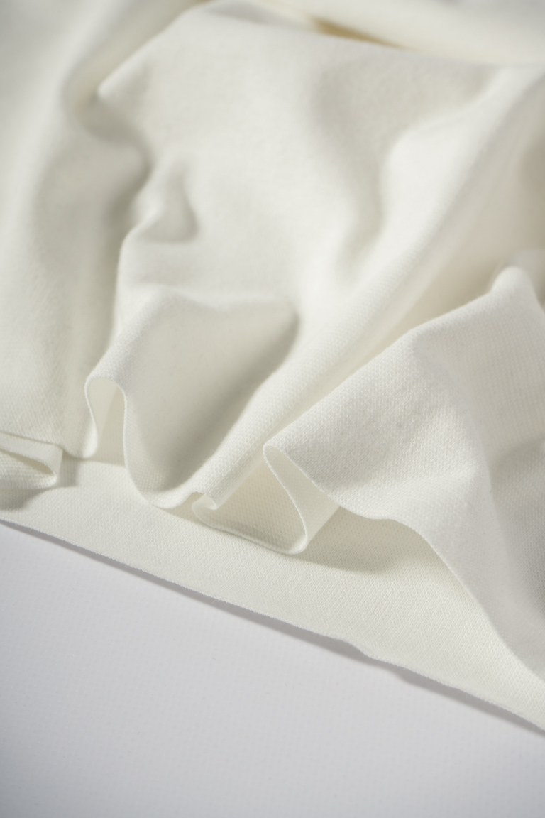 Мягкий хлопковый трикотаж премиального качества компакт-пенье. Хорошо тянется в поперечном направлении, держит форму, обладает средней драпируемостью. Лицевая и изнаночная стороны полотна гладкие, тактильно приятные к телу. Предназначен для оформления горловин, манжет и поясов в вещах из кулирной глади и футера-двунитки. Может использоваться для пошива вещей первого слоя с плотной посадкой по фигуре – топов, боди, маек и белья.