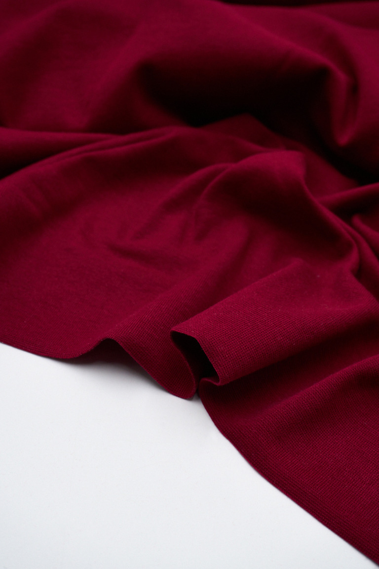 Мягкий хлопковый трикотаж премиального качества компакт-пенье. Хорошо тянется в поперечном направлении, держит форму, обладает средней драпируемостью. Лицевая и изнаночная стороны полотна гладкие, тактильно приятные к телу. Предназначен для оформления горловин, манжет и поясов в вещах из кулирной глади и футера-двунитки. Может использоваться для пошива вещей первого слоя с плотной посадкой по фигуре – топов, боди, маек и белья.