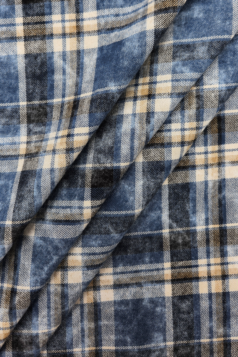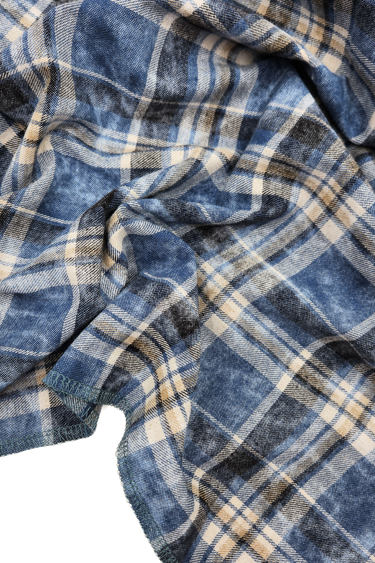 Средняя по плотности рубашечная ткань с трендовым клетчатым принтом и эффектом состаренного - винтажного полотна. Лицевая сторона гладкая, матовая. Изнанка мягкая, приятная к телу. Ширина рапорта (одной клетки) 11,5 см * 10 см. Благодаря натуральному составу, почти не мнется и хорошо пропускает воздух. Не тянется, не имеет выраженной формоустойчивости. Предназначена для пошива свободных или полуприлегающих вещей – платьев, рубашек, пижам и домашней одежды.
