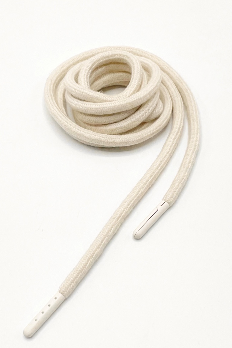 ШНУР КРУГЛЫЙ ПЛЕТЕНЫЙ РИСОВАЯ МУКА/СЛИВОЧНЫЙ D(0,6)СМ. Х/Б 135 СМ.(НАКОНЕЧНИК В ЦВЕТ) №8080