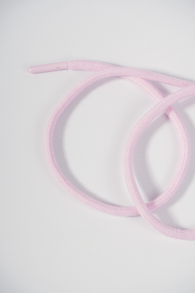 ШНУР КРУГЛЫЙ ПЛЕТЕНЫЙ ПЕРВЫЙ ПОЦЕЛУЙ D(0,6)СМ. Х/Б 135 СМ.(НАКОНЕЧНИК В ЦВЕТ) №8023