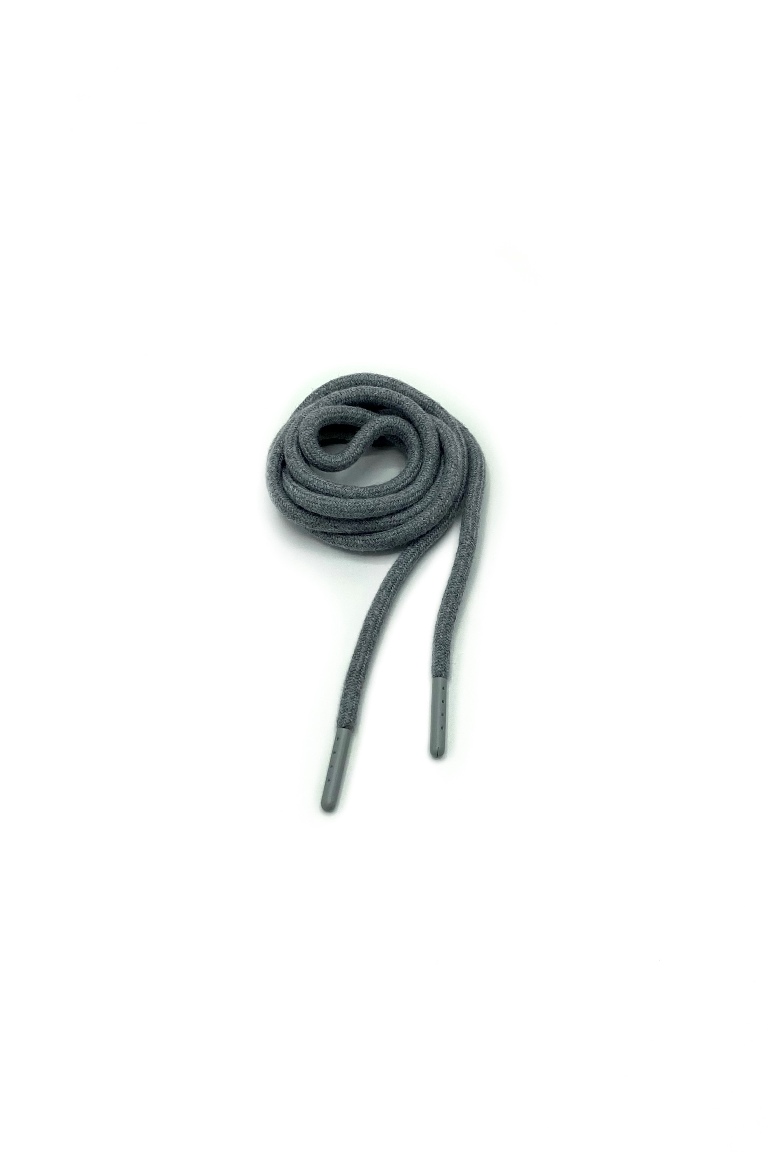 ШНУР КРУГЛЫЙ ПЛЕТЕНЫЙ СЕРЫЙ МЕЛАНЖ D(0,6)СМ. Х/Б 135 СМ.(НАКОНЕЧНИК В ЦВЕТ) 8021