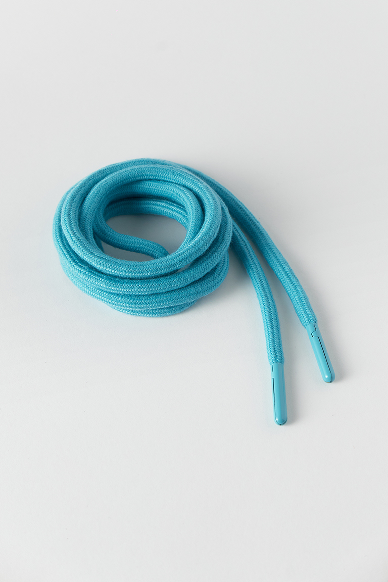 ШНУР КРУГЛЫЙ ПЛЕТЕНЫЙ НЕБЕСНАЯ ЛАЗУРЬ D(0,6)СМ. Х/Б 135 СМ.(НАКОНЕЧНИК В ЦВЕТ) 8066