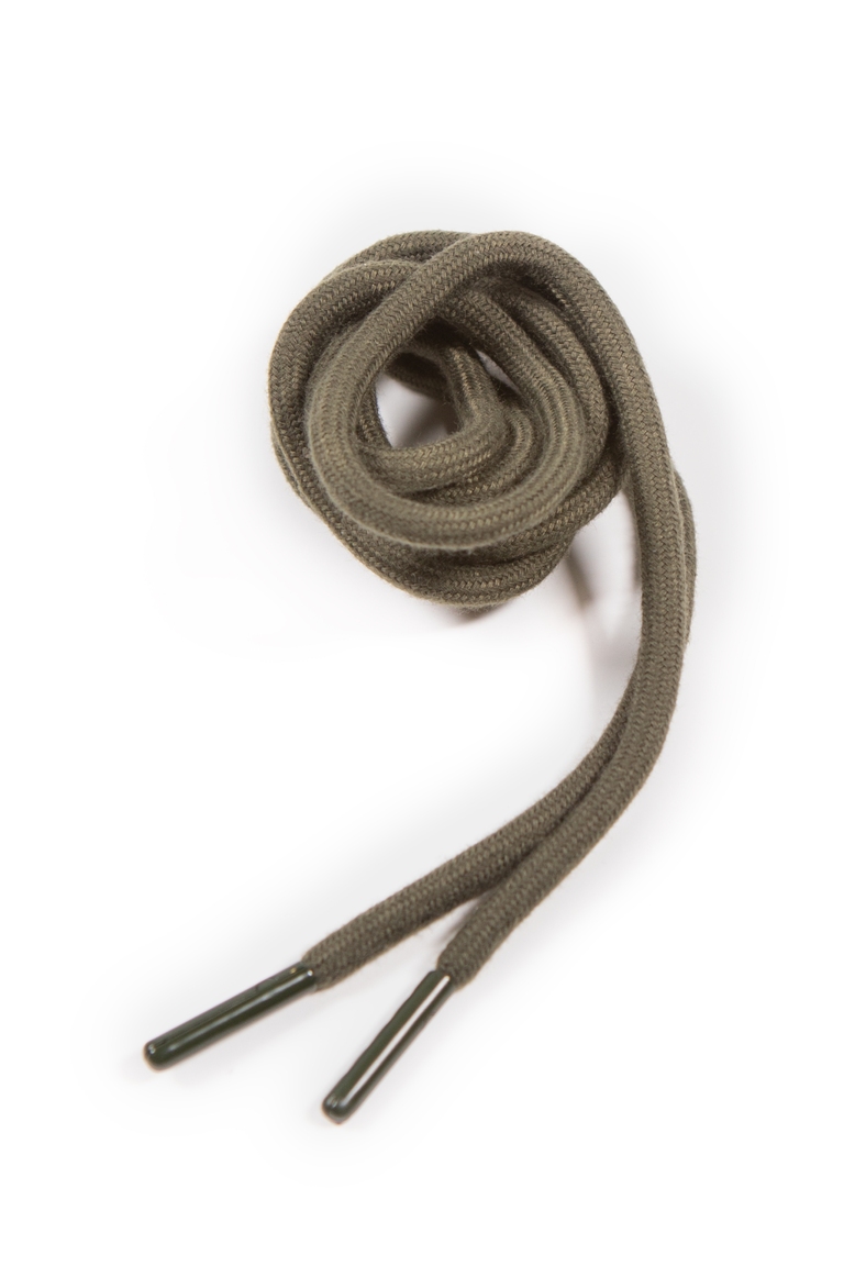 ШНУР КРУГЛЫЙ ПЛЕТЕНЫЙ ПЫЛЬНЫЙ ОЛИВКОВЫЙ/МАТЧА D(0,6)СМ. Х/Б 135 СМ.(НАКОНЕЧНИК В ЦВЕТ) 8054