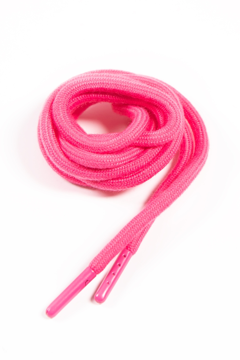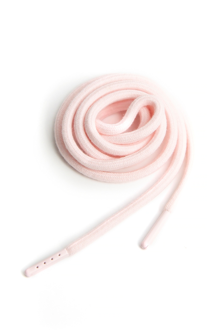 ШНУР КРУГЛЫЙ ПЛЕТЕНЫЙ КЛУБНИЧНЫЙ ЙОГУРТ/ЗЕМЛЯНИКА СО СЛИВКАМИ D(0,6)СМ. Х/Б 135 СМ.(НАКОНЕЧНИК В ЦВЕТ) №8035