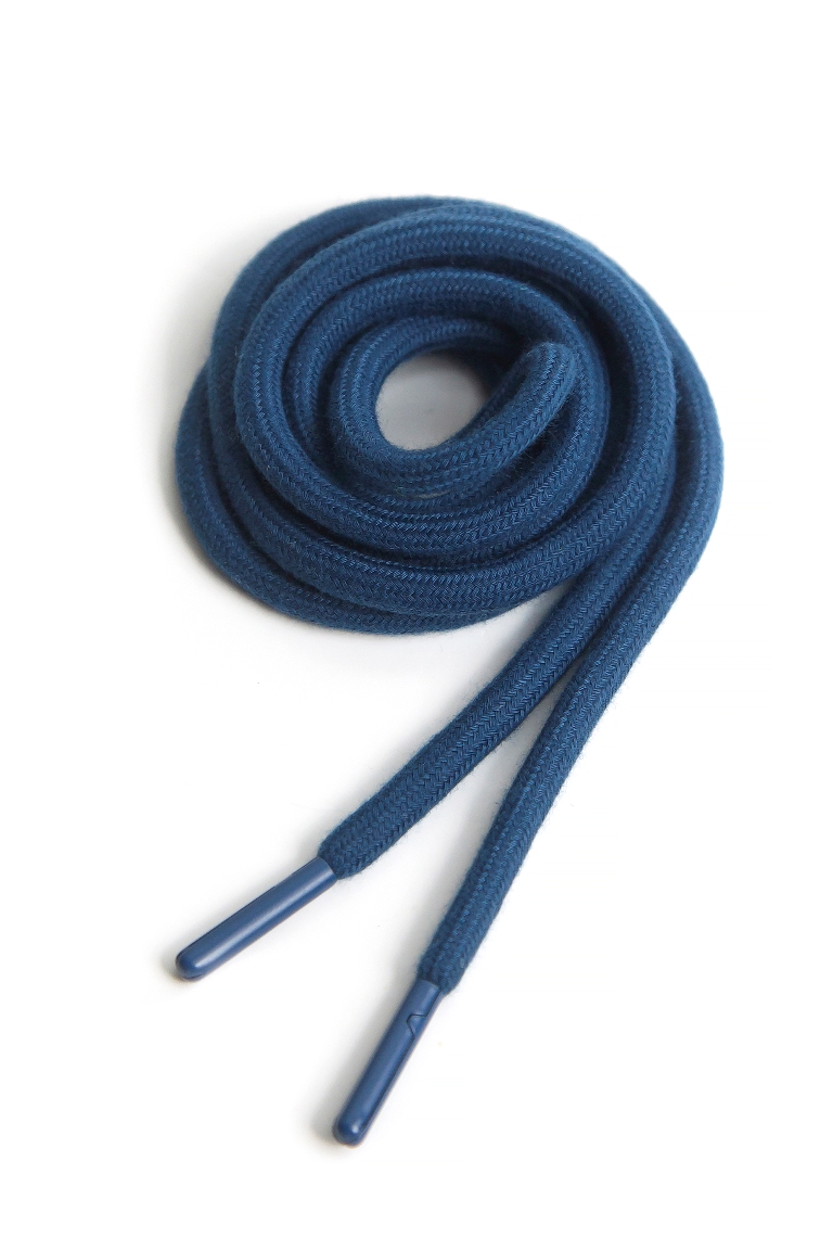 ШНУР КРУГЛЫЙ ПЛЕТЕНЫЙ ИНДИГО ОДНОТОН D(0,6)СМ. Х/Б 135 СМ.(НАКОНЕЧНИК В ЦВЕТ) №8088